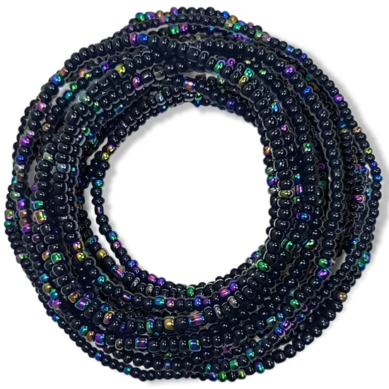 These black and iridescent waist beads blend mystery and shimmer, combining deep grounding tones with a rainbow glow that shifts in the light. Perfect for everyday wear or adding subtle sparkle to your layers.